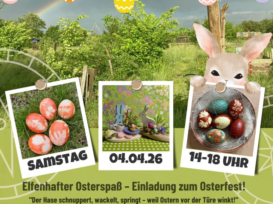 Am Ostersamstag, den 04.04. findet unsere beliebte Ostereierei auf der Wiese statt. Die StadtradELFen laden Euch von 14 bis 18 Uhr ein zu einem zauberhaften Osterfest am Lagerfeuer! Kommt vorbei und genießt einen fröhlichen Nachmittag voller Spiel, Spaß und Leckereien Kommt alle vorbei, die ein paar Stunden mit Kaffee und