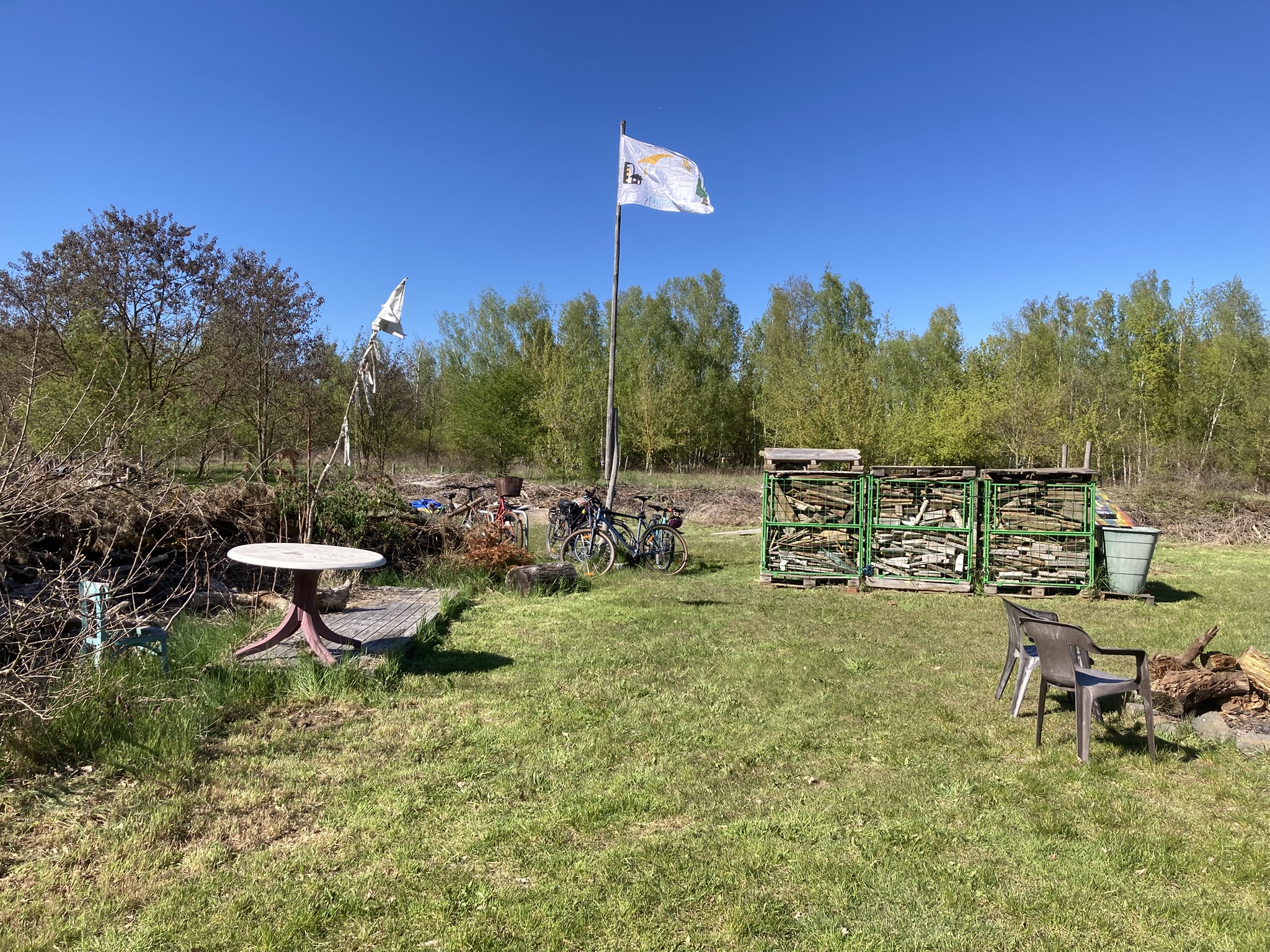 Bei (ungewöhnlich für Aktivitäten auf der Wiese) wunderbarem Frühlingswetter wurde fleißig Hammer, Säge, Schrauber, Spaten und diverse andere Werkzeuge geschwungen. Neue Gesichter und erfahrene ELFen trafen sich. Gemeinsam brachten wir die Wiese in Schuss und brüteten neue Ideen und Projekte aus.